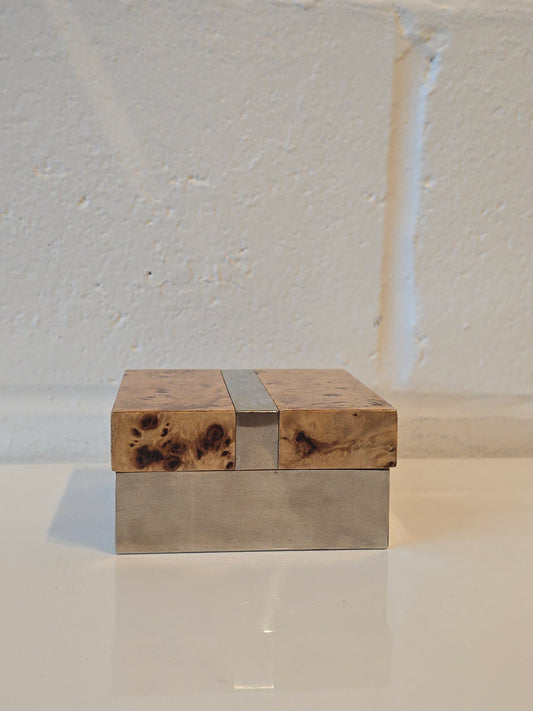 Tommaso Barbi Burl Wood and Chrome Decoretive cigar box