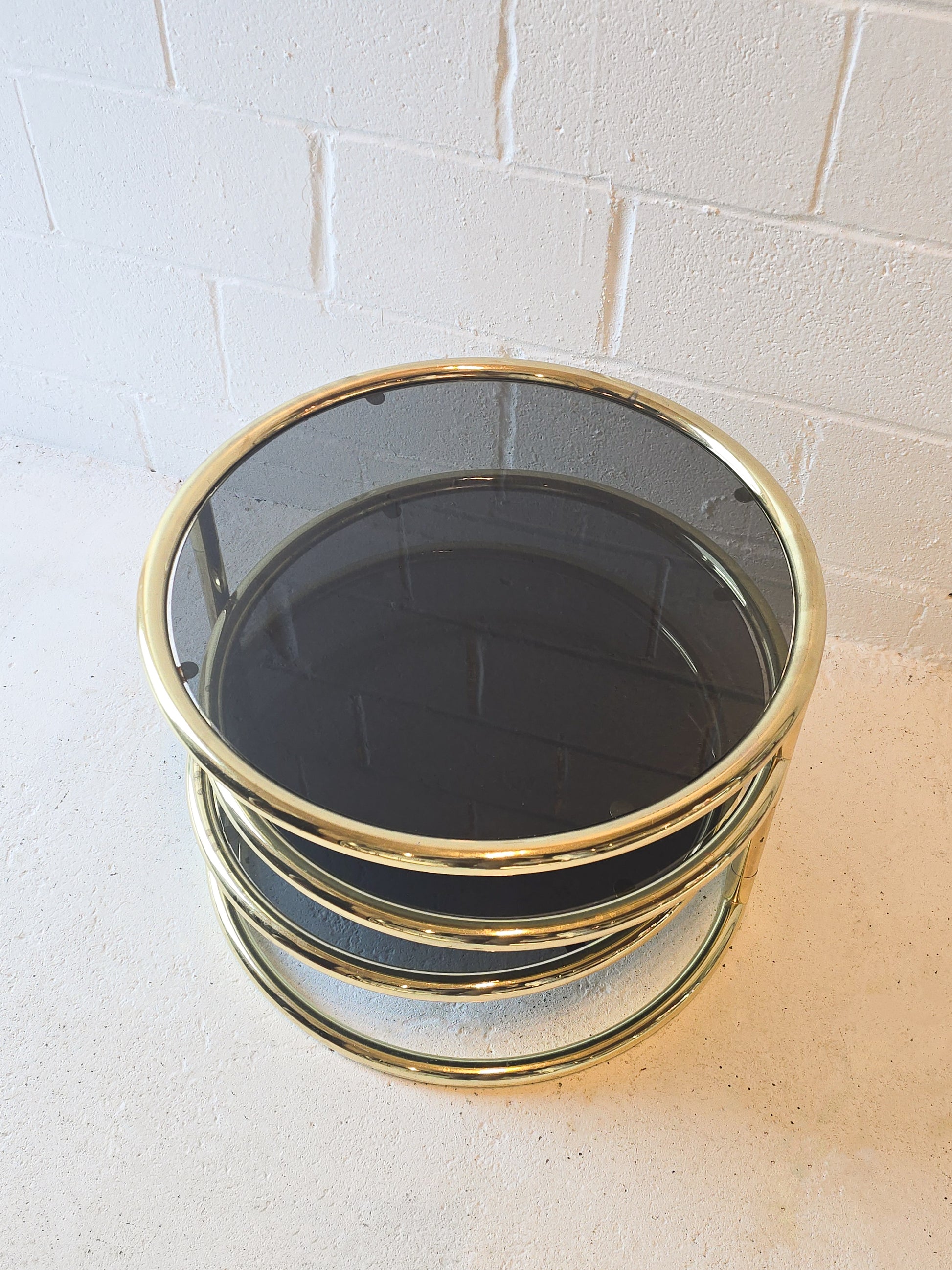 Brass & Tinted Glass Swivel Table
