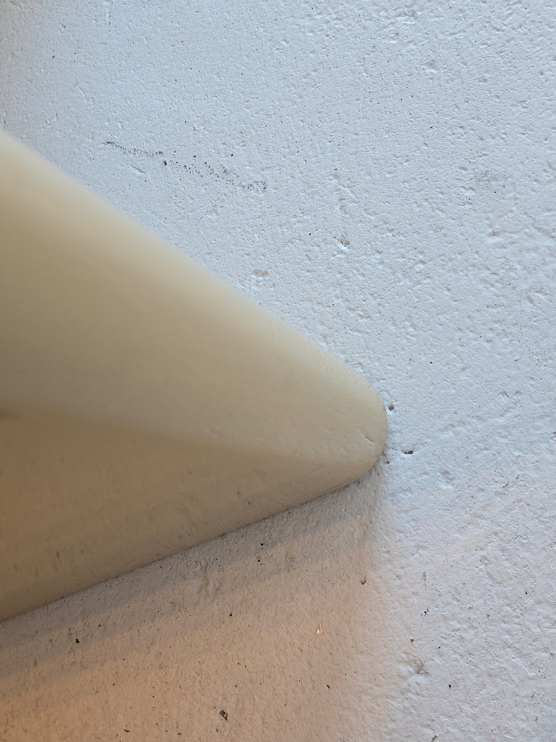 Gorgeous lacquered cream colour waterfall side table with golden inlays on top. Made in the 1980s by Bauhaus Design Canada Ltd. Matching coffee table also available.