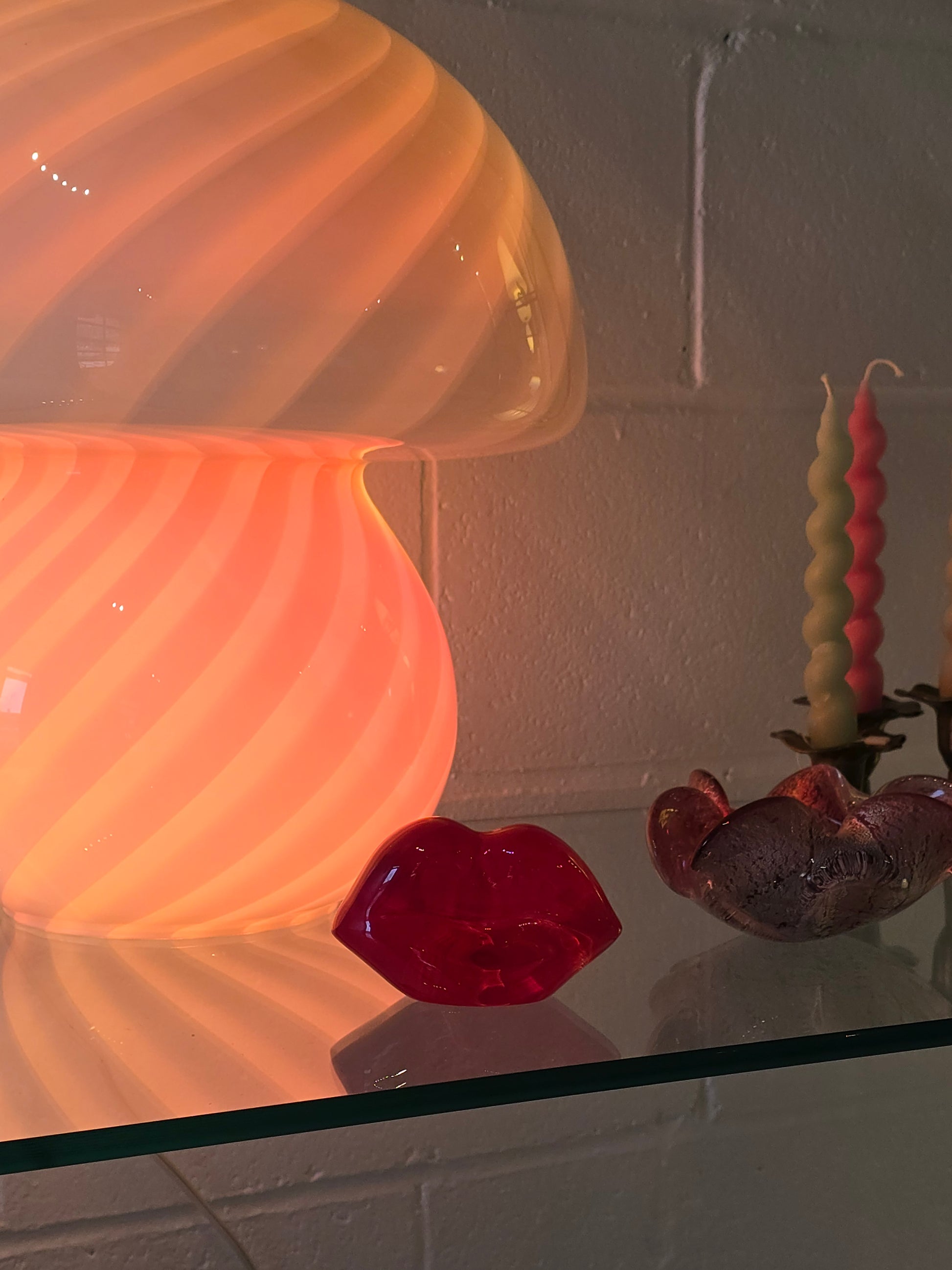 Gorgeous Kosta Boda glass lips from Kosta Boda's Make Up Collection. This collection was designed by Asa Jungnelius which was meant to be a tribute to womanhood. In great condition.