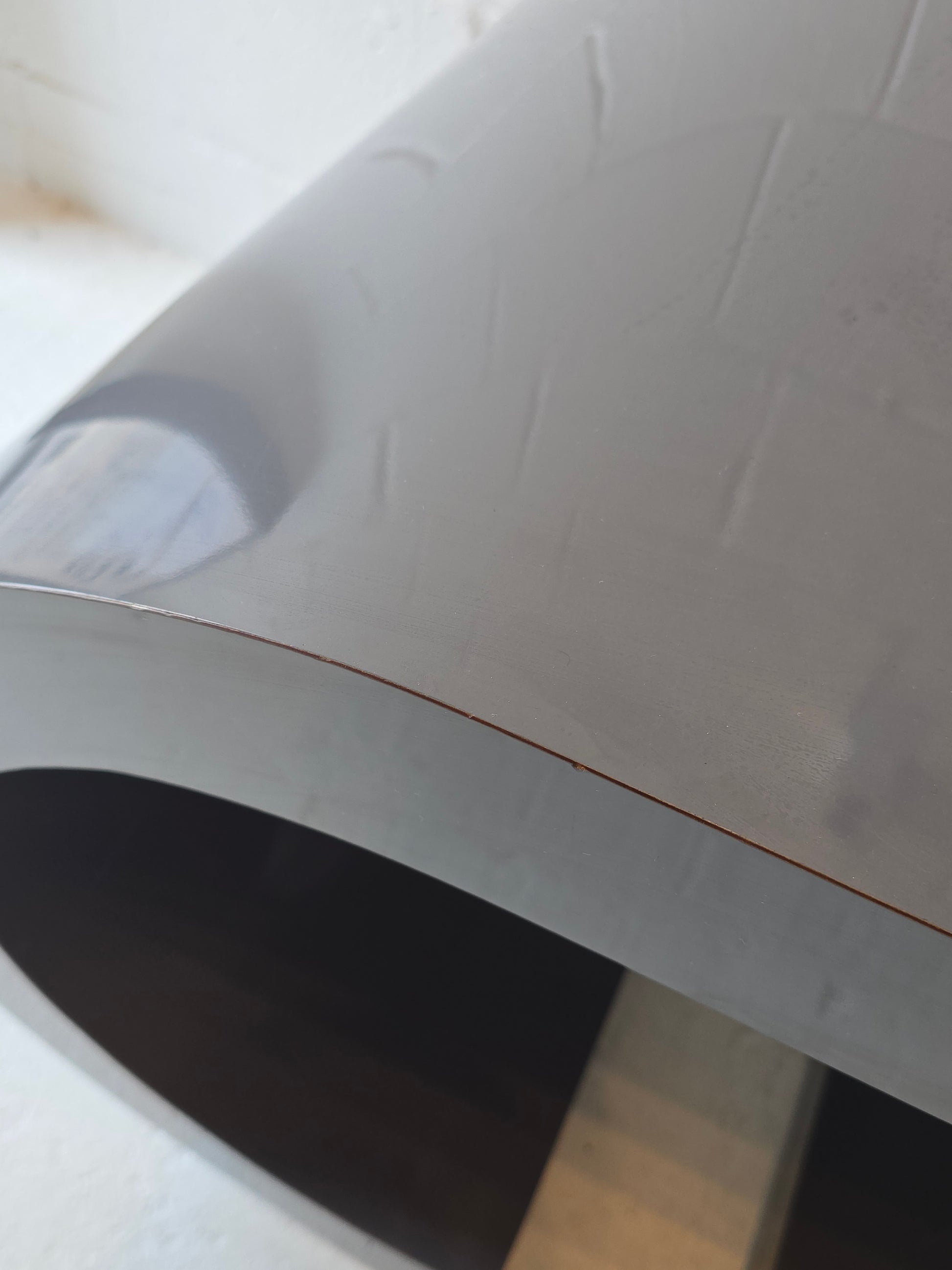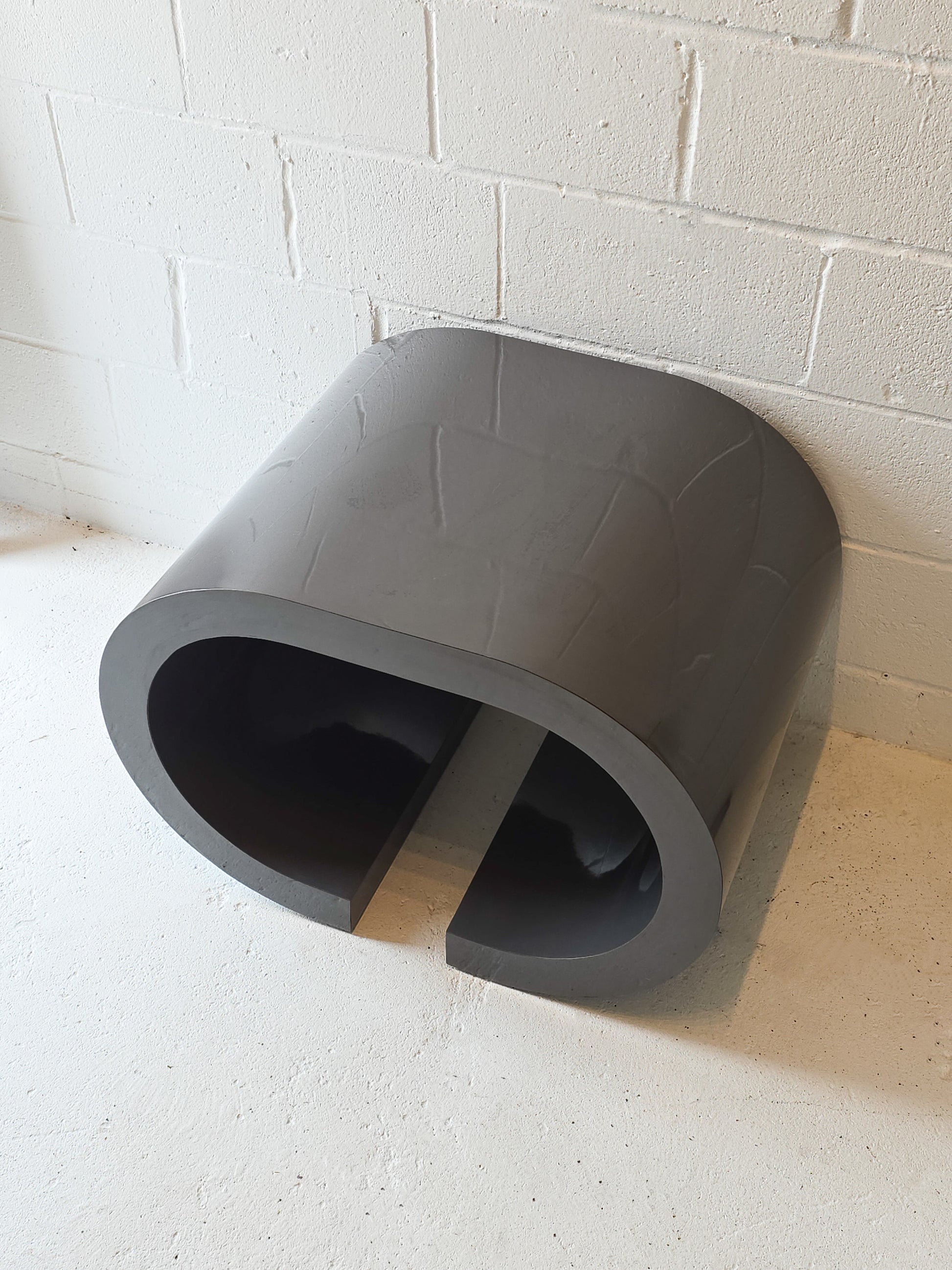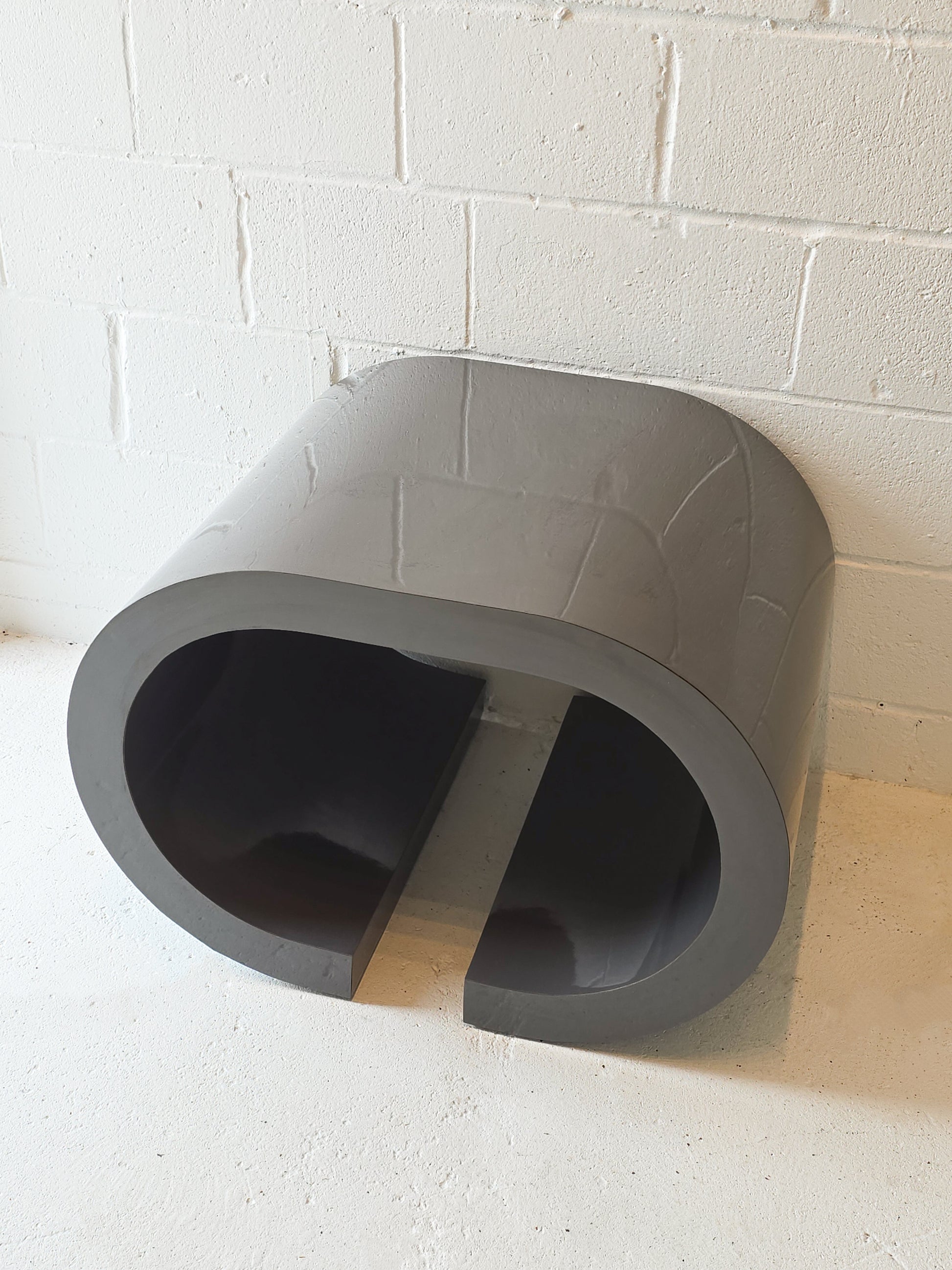 Stunning 1980s lacquered dark grey scroll table. This is a hard to find design made in the United States, circa 1980s. In great vintage condition with some minor signs of wear (see photos).