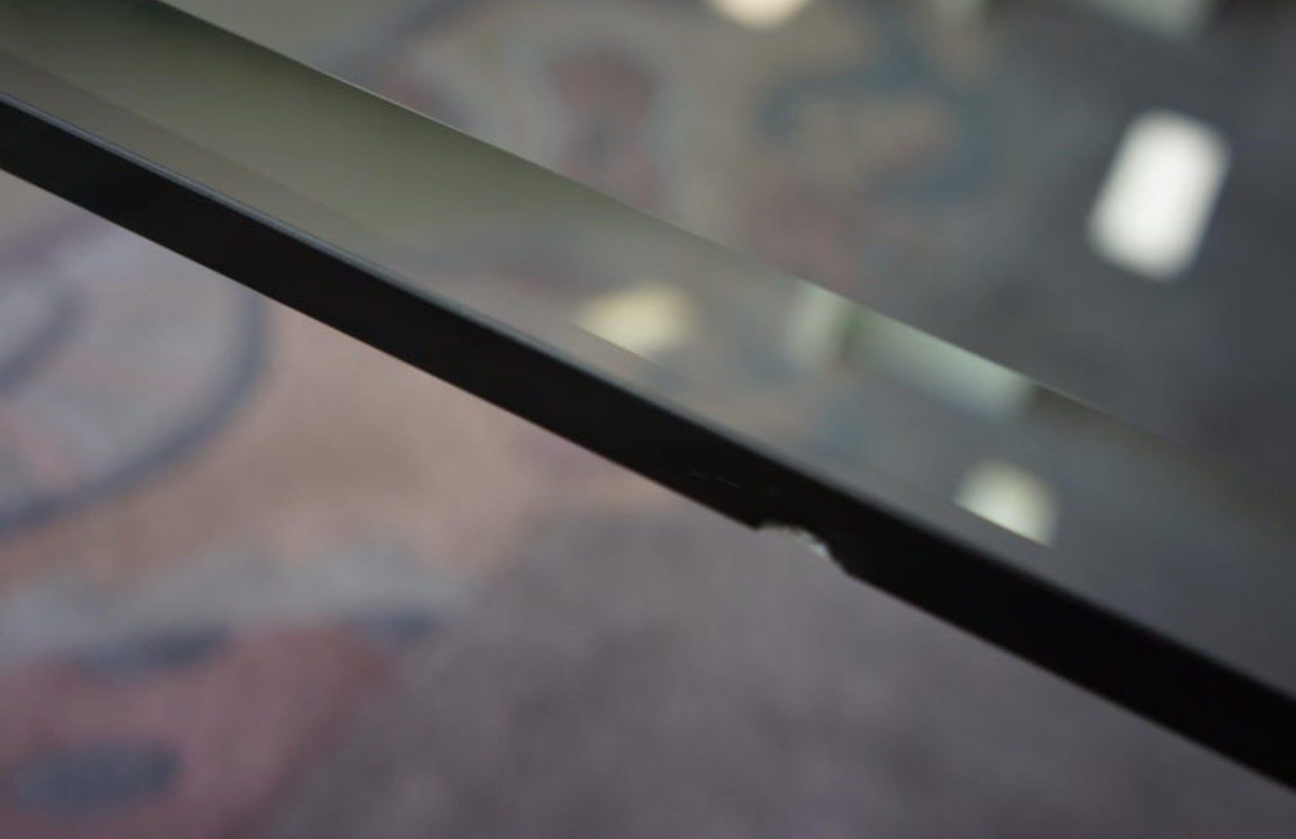 In overall good condition, some wear on lacquer, and chip/wear on beveled glass.