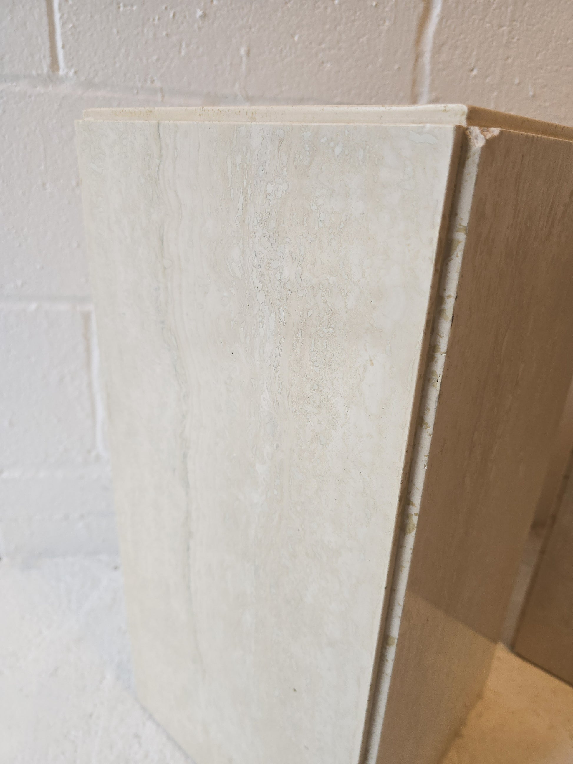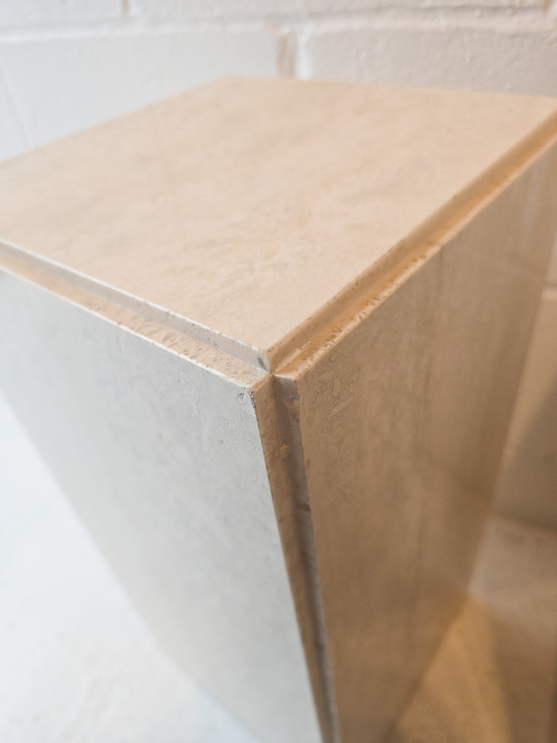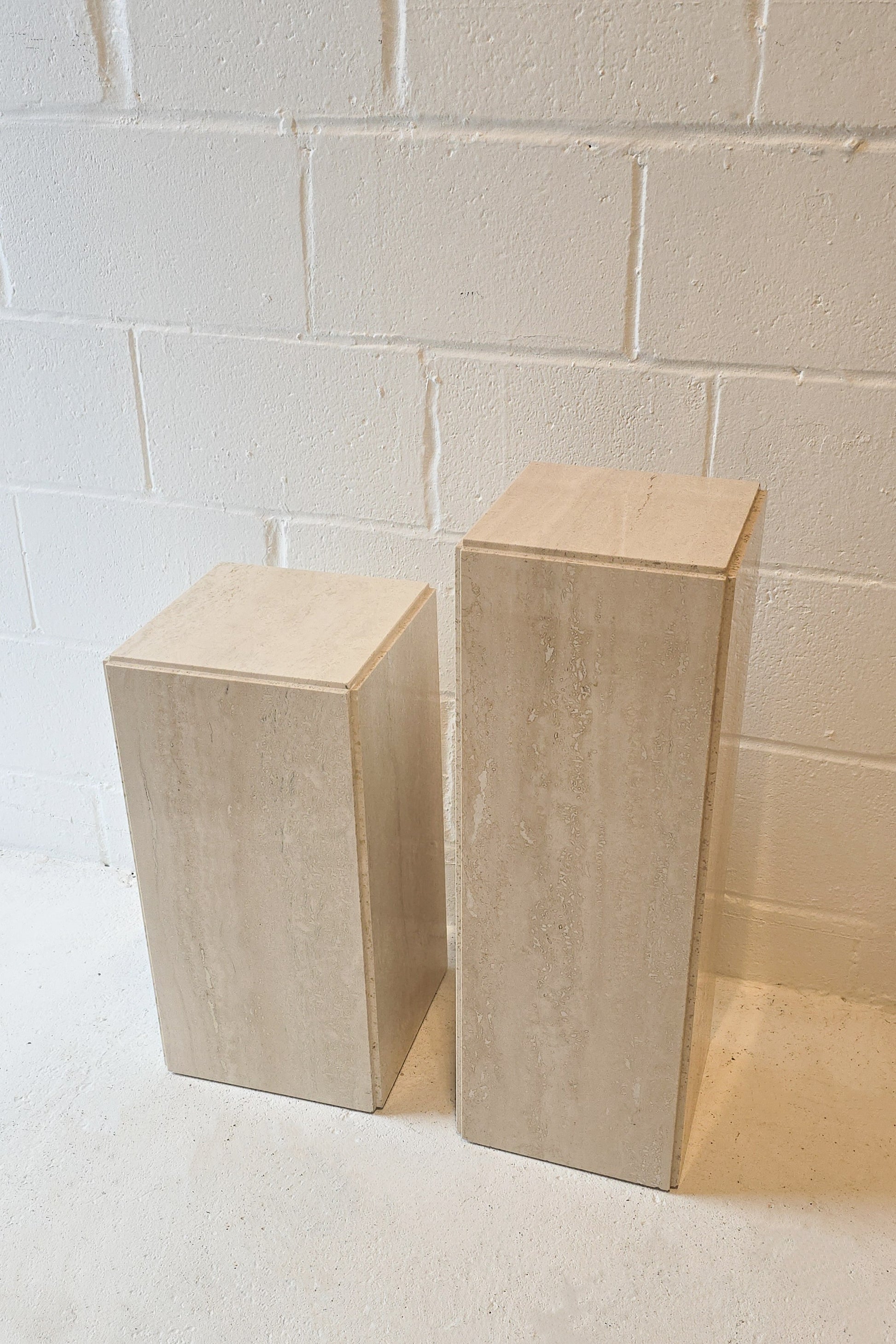 Lovely travertine table plinths that can be used as side tables or plinths or both! These beauties are rare in size and are in great vintage condition. Sold individually or as a set.