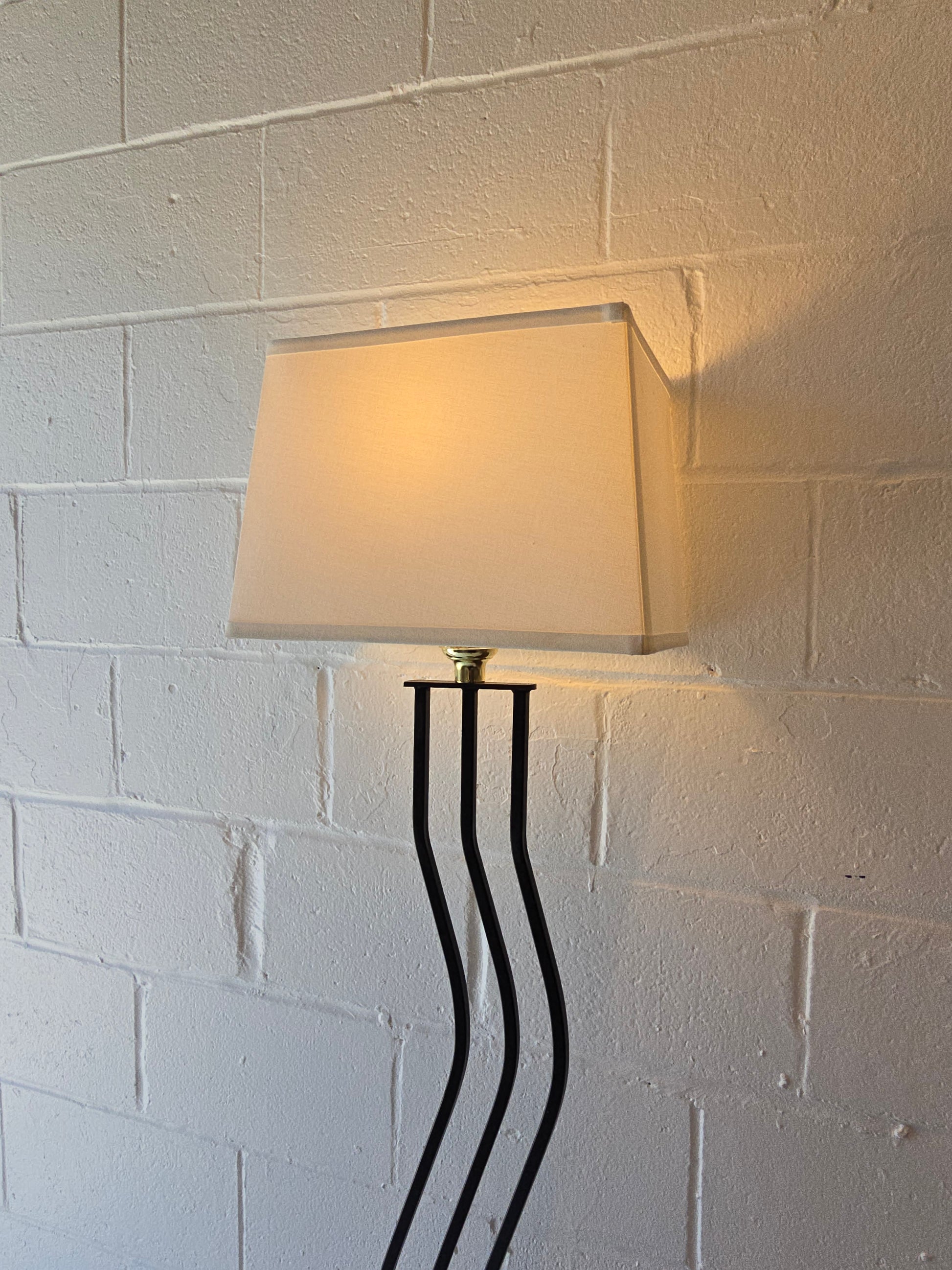 Postmodern style wiggle wavy floor lamp. In great condition, small dent/wear on base. There's a matching table lamp also available. Shade can be replaced.